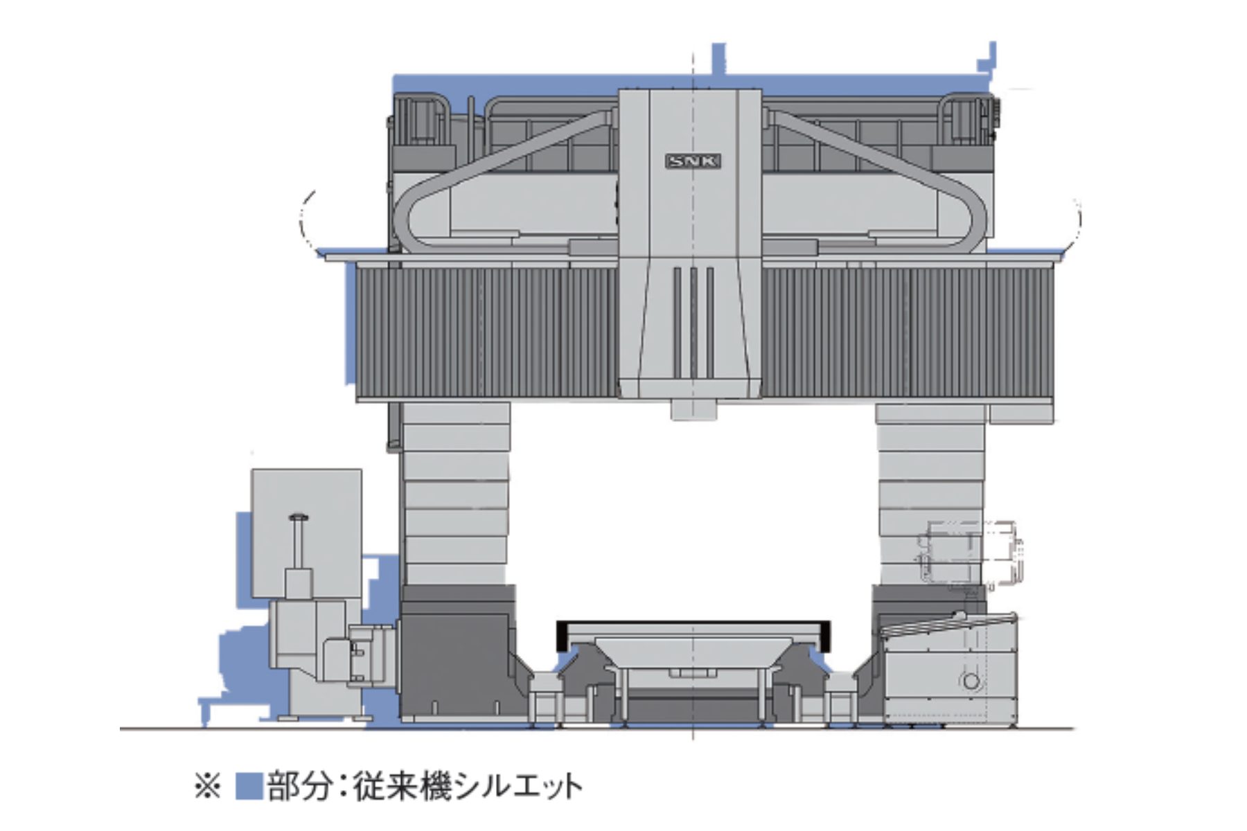 与旧机种相比,本机在提升了200 mm的Y轴加工范围的同时,缩小了600 mm的机械本体尺寸。在场地大小与旧机种相同的情况下,能够设置更大一号的机械。