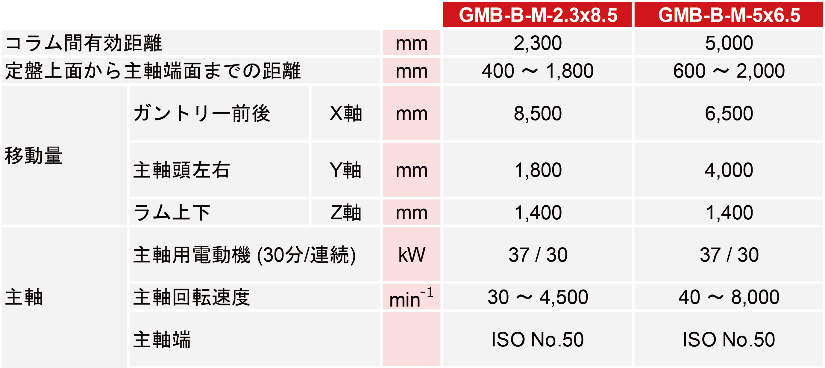 鉄の重切削加工向けガントリー型5面加工機です。大きなストロークを擁するラムには当社の遠心力鋳造管を採用し、剛性を確保しています。定盤を前部(Aゾーン)、及び後部(Bゾーン)に取付けし、ゾーン毎にワークの段取り作業を行うことが可能で複数ワークの連続加工を効率よく行えます。