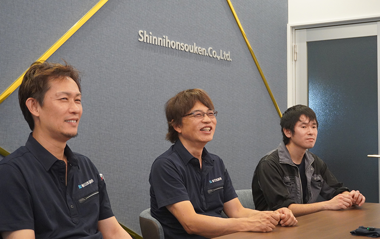 左から工場長 中村様、代表取締役 名倉様、オペレータ 山本様